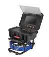Full HD камера разрешением 1080P (1920x1080) для четкого просмотра труб диаметром 25мм - 200мм и на длину 40м. Со счетчиком расстояния и записью видео и аудио. 10" монитор с DVR плеером внутри кейса. Кабель 5.2мм на раме с внешней стороны.