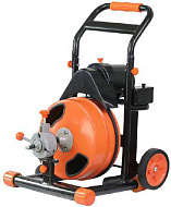 Профессиональная прочистная машина мощностью 250Вт с механизмом автоматической подачи и двухкомпонентной спиралью 13мм, устойчивой к поломкам спутыванию и перегибам, длиной 15.4 метра. Прочная стальная рама с быстросъемным закрытым барабаном и удлиненной ручкой. В комплекте 4 насадки.