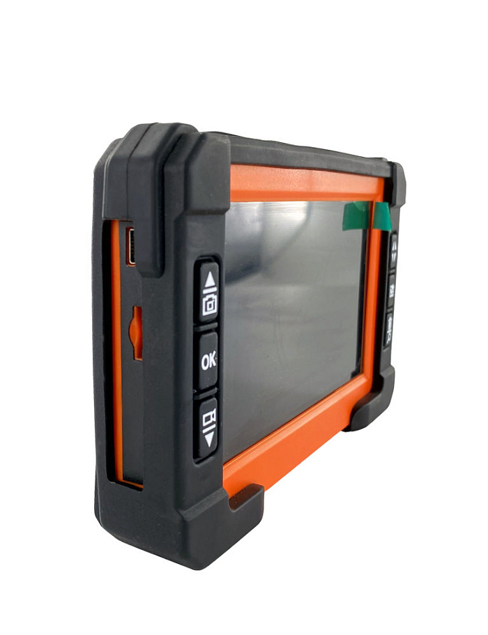 Монитор диагональю 5 дюймов, имеет разъем USB для подключения источника и слот для карт Micro SD. Корпус экрана имеет защищенную противоударную конструкцию.