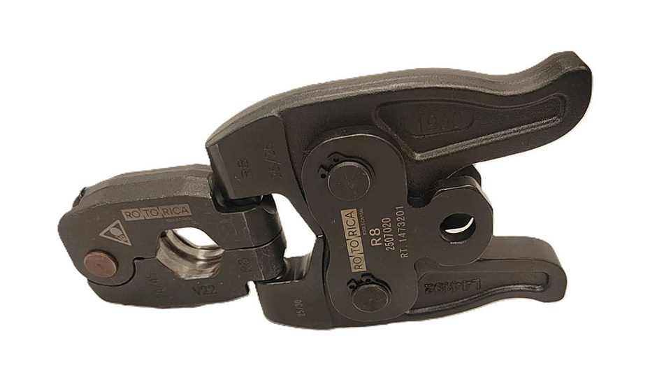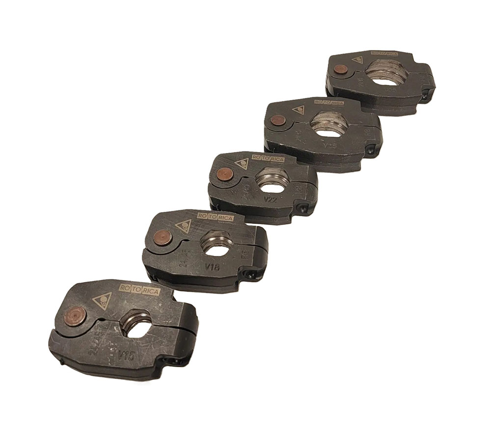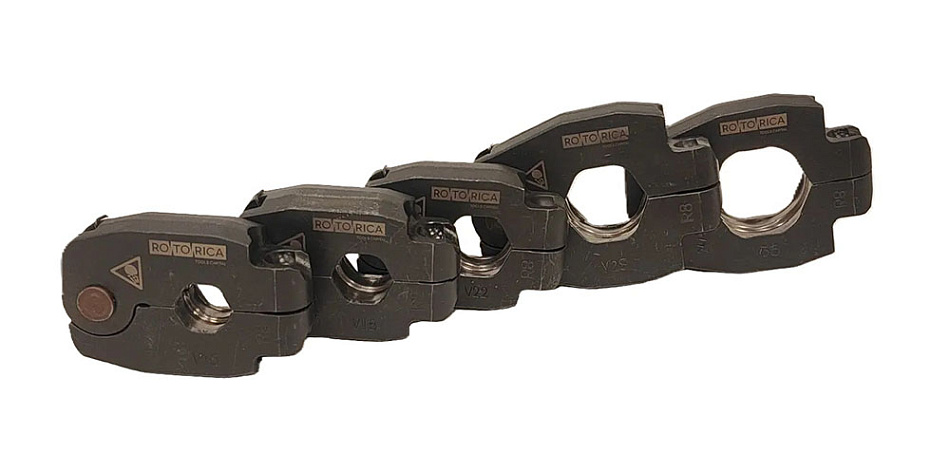 Поворотные пресс-кольца Rotorica предназначены для обжатия радиальных пресс-фитингов тонкостенных медных, нержавеющих и стальных труб с профилем V и диаметрами от 15 до 35 мм.