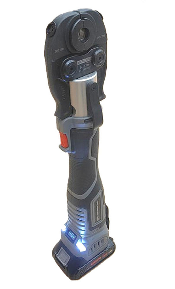 Механический аккумуляторный мини-пресс для радиальных фитингов. OLED - дисплей. Усилие обжима 19 кН. Диапазон Ø 12 - 35 мм (16 - 40 мм). Два аккумулятора Li-Ion, 18 В, 2.0 А•ч. Пластиковый кейс.