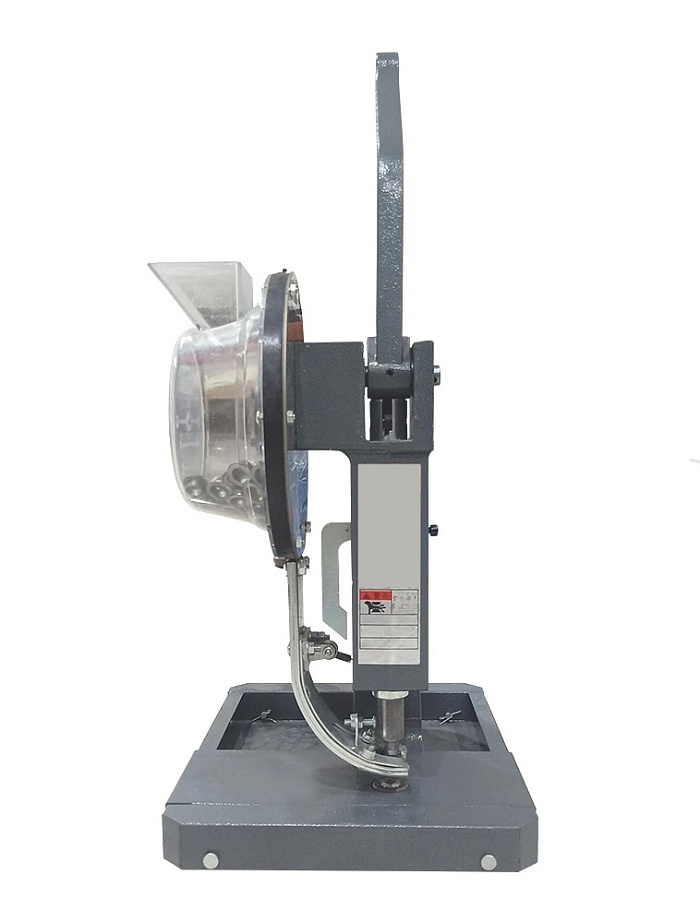 Полуавтоматический аппарат для установки люверсов определенного размера 5,5; 6; 8; 10; 12 мм. На каждый размер люверса отдельный аппарат. Встроенные колесики. Скорость установки люверсов 50 - 80 шт/мин.